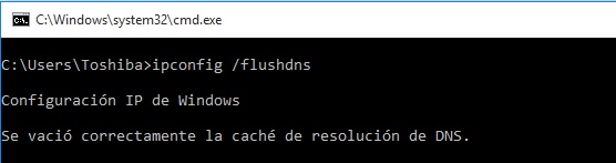 La forma de vaciar esta información es mediante el comando ipconfig /flushdns