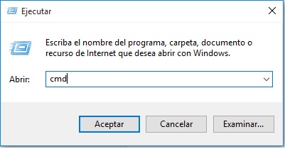 Ir a “Inicio> Ejecutar” y escribe ” cmd” (sin comillas) y, a continuación, seleccione “Aceptar” o  la tecla Windows + R y escribir cmd