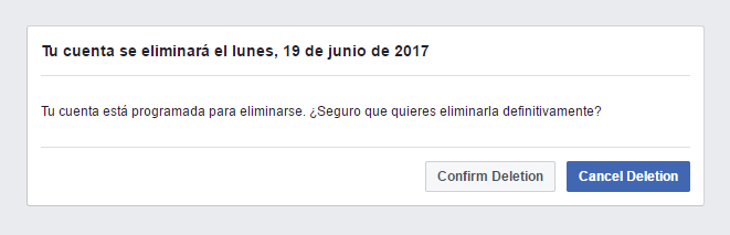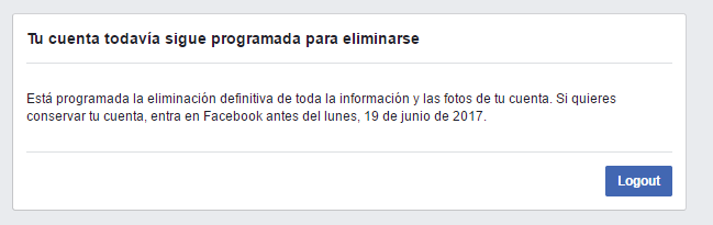 Si te arrepientes de haber borrado tu cuenta de Facebook solo tienes que iniciar sesión nuevamente y pulsar el botón de Cancel Deletion, en ese periodo de 14 días de caso contrario sera eliminada permanentemente.