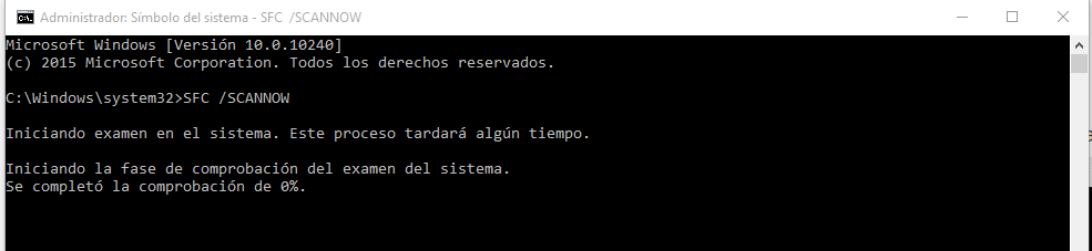 3- En la ventana de la consola escribe: SFC /SCANNOW y presiona la tecla Enter