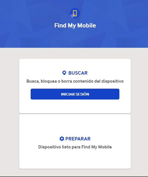 una vez tengamos asociado nuestro movil  con nuestra cuenta de Find My Mobile, ingresaremos al siguiente link.