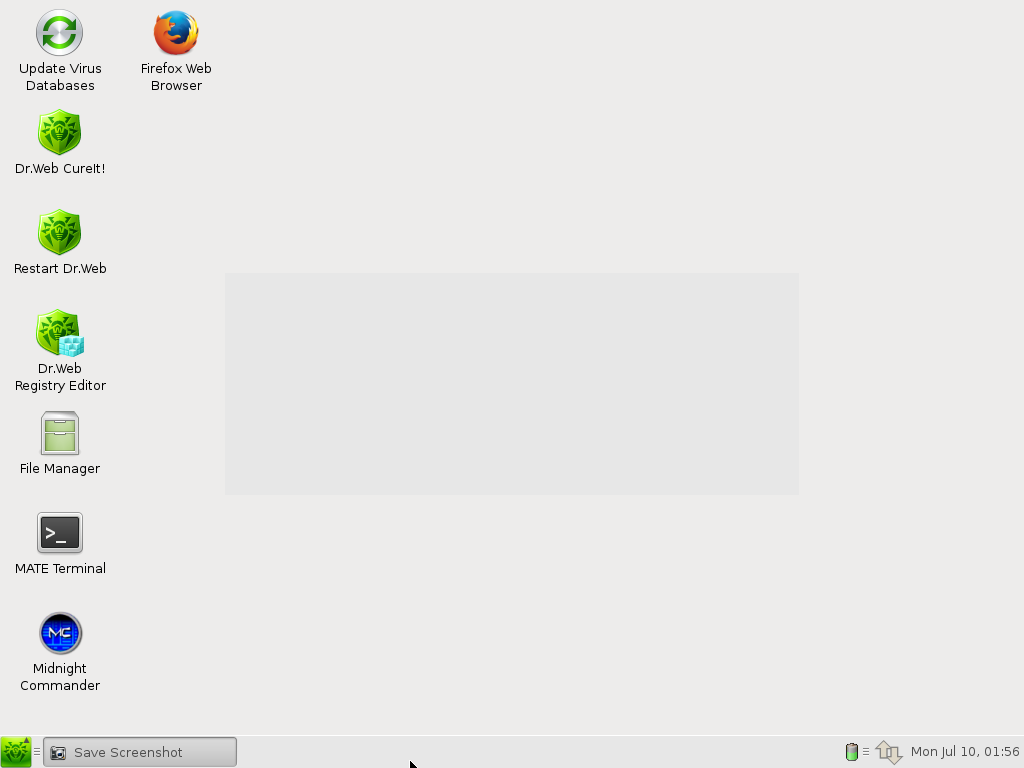 Dr.Web Antivirus LiveCD: es un antivirus de rescate gratuito basado en Linux con una interfaz gráfica, cuenta con un potente motor de búsqueda, para detectar y eliminar virus, troyanos y todo tipo de malware. Ademas cuenta con una opción para restaurar el sistema operativo cuando hay fallos provocados por malware.