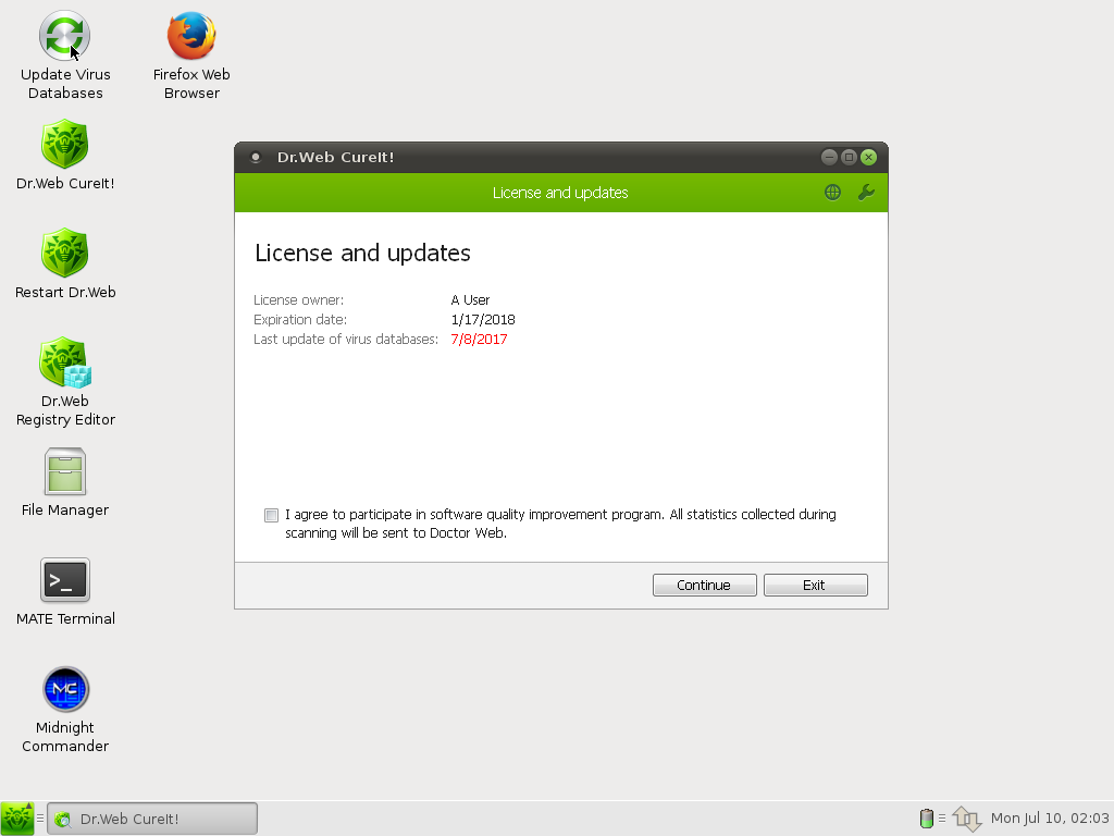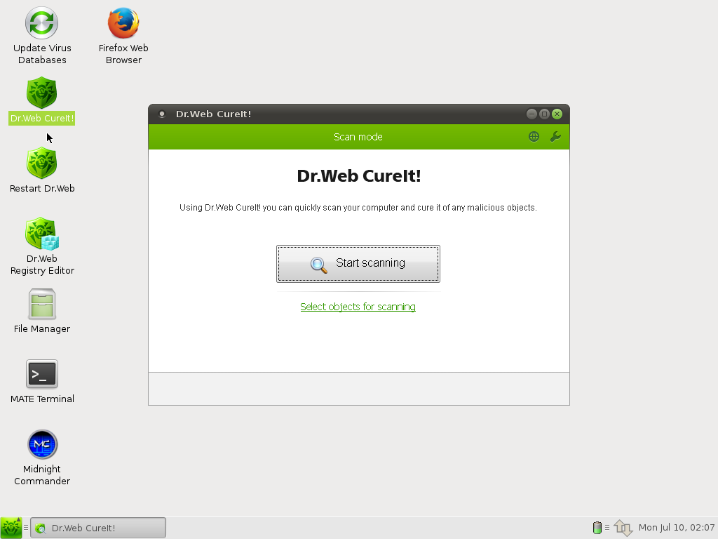 ya podremos ejecutar Dr. Web para escanear nuestro sistema operativo