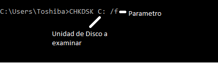 Usando el comando de esta forma, es decir sin especificar ningún parámetro u opción, CHKDSK revisa el disco seleccionado y al final muestra el informe de su estado y de la integridad del sistema de archivo, pero no realiza ninguna acción.