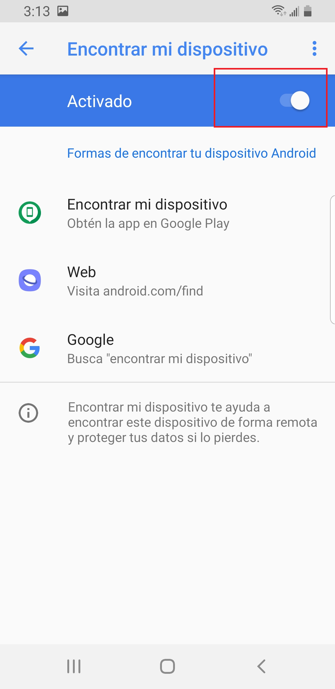 y sobre todo tener la opción Encontrar mi dispositivo activa en el