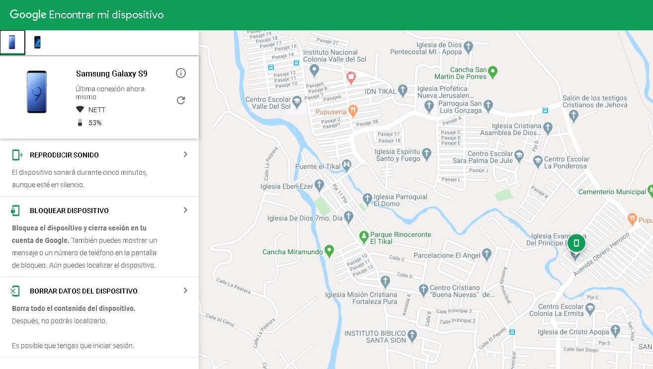 En el mapa, recibirás información sobre la ubicación del teléfono.