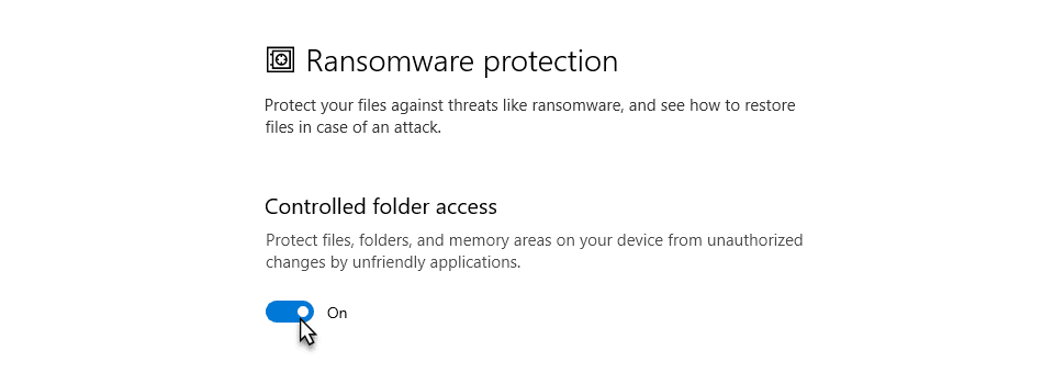 Cambie la opción de alternar a “Activado” en Acceso controlado a carpetas.