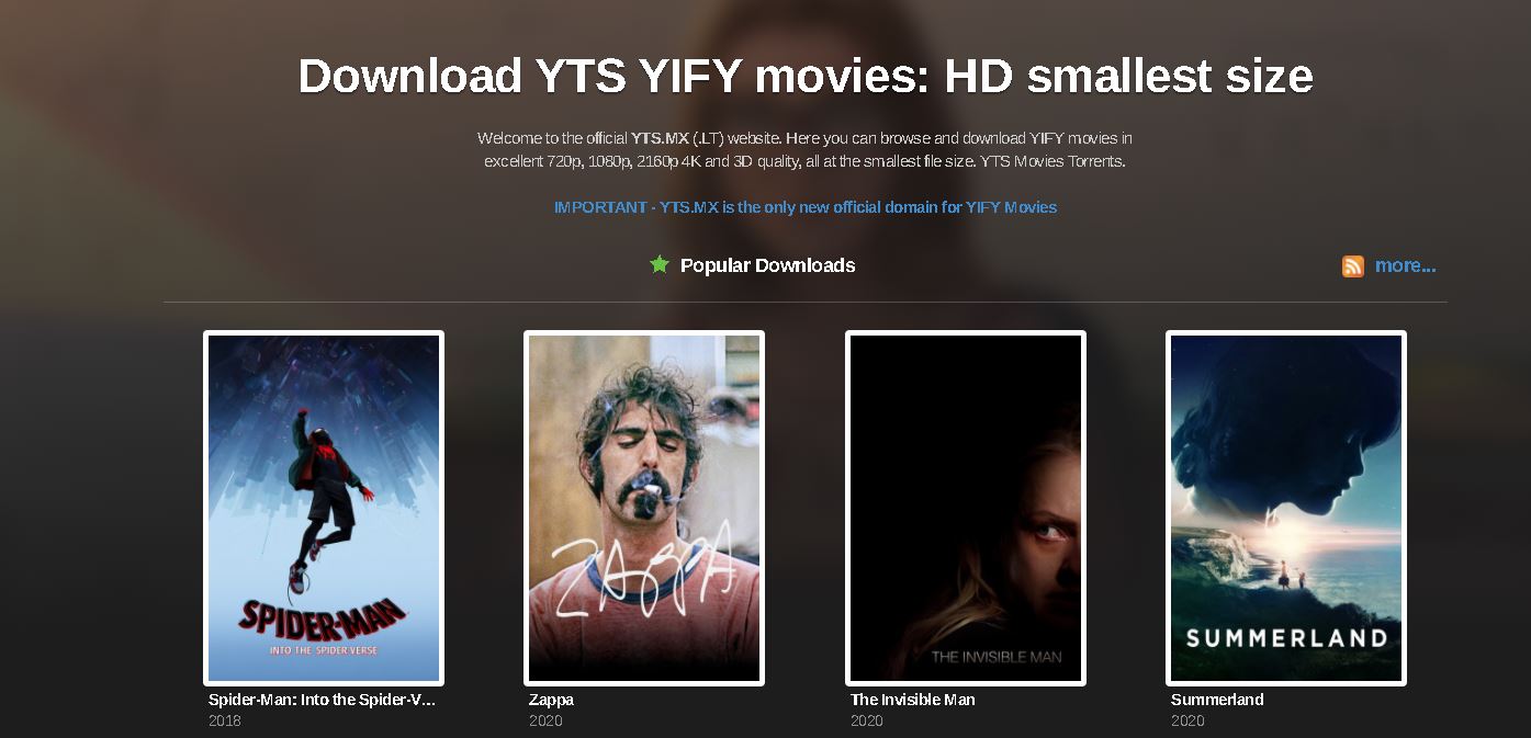 YTS es conocido por su apariencia visual. Siguiendo la línea