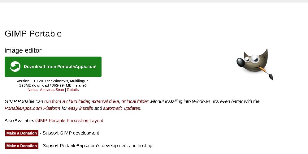 programa. La necesidad de acceder a todos estos significa que GIMP Portable