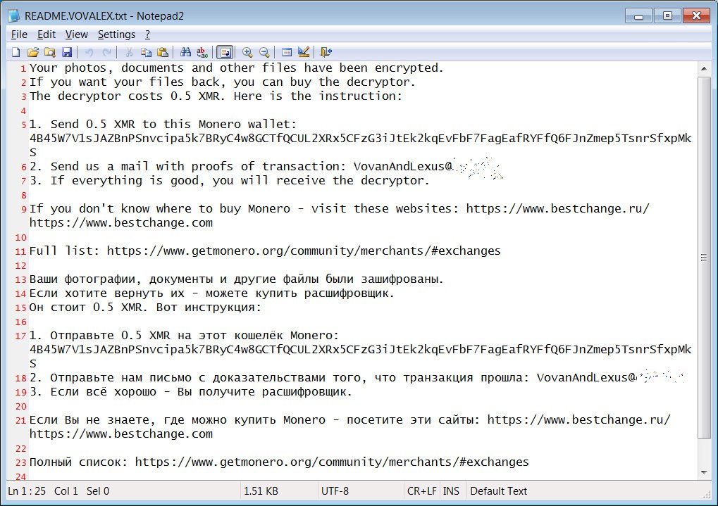 llamada README.VOVALEX.txt en el escritorio que solicita 0.5 XMR (Monero) para