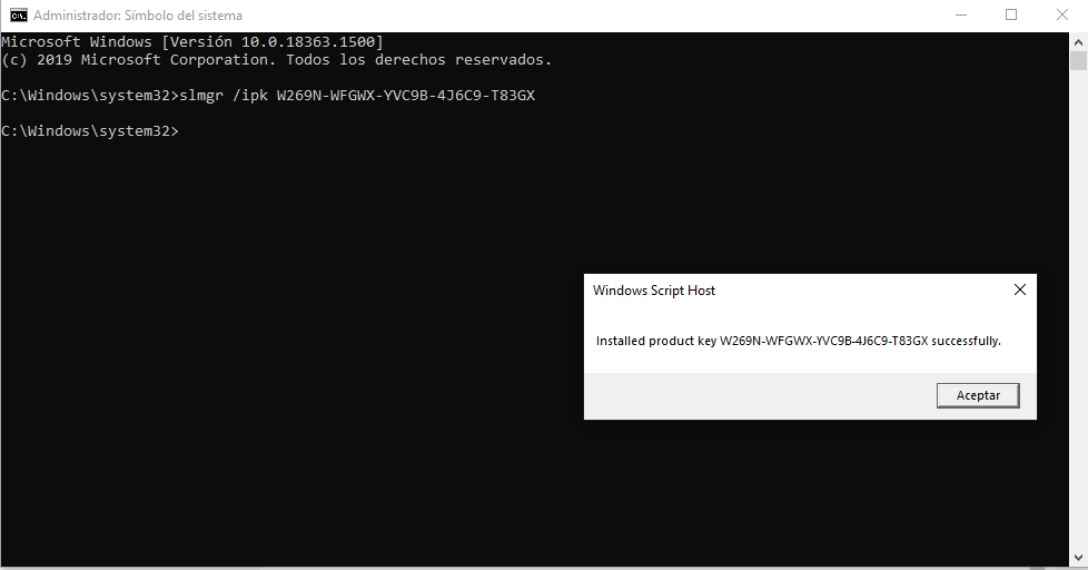- slmgr /ipk COLOCA-LA-CLAVE-PARA-ACTIVAR
