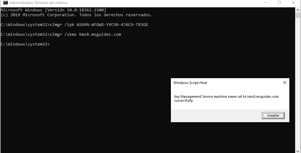 - slmgr /skms kms8.msguides.com