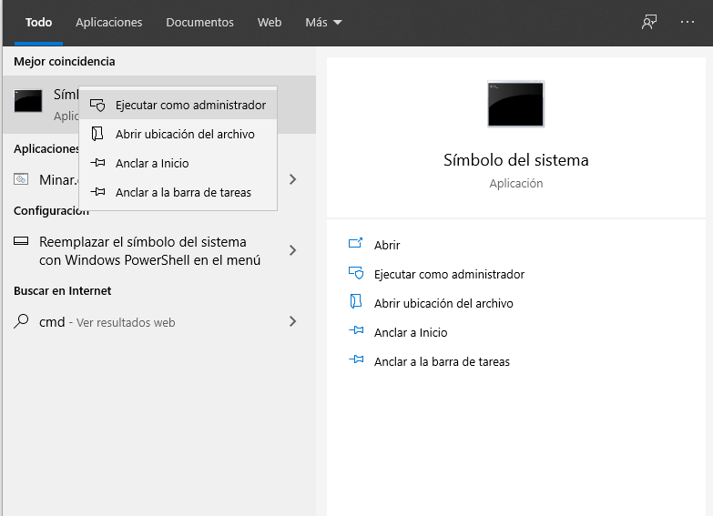 Lo único que tenemos que hacer es ejecutar la consola CMD